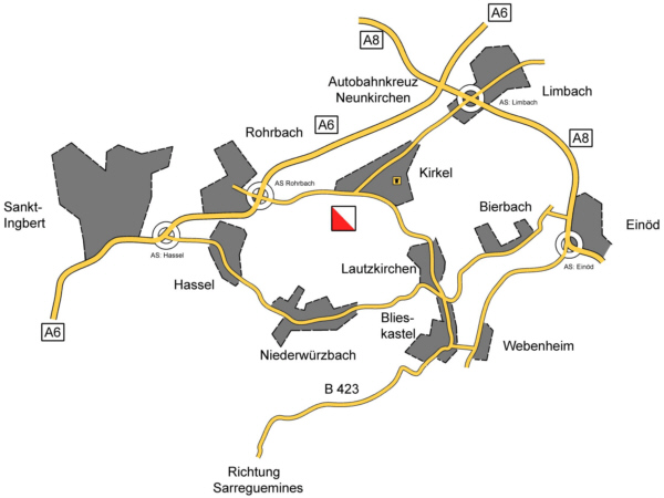 ab A6 AS Rohrbach zur Burghalle Kirkel